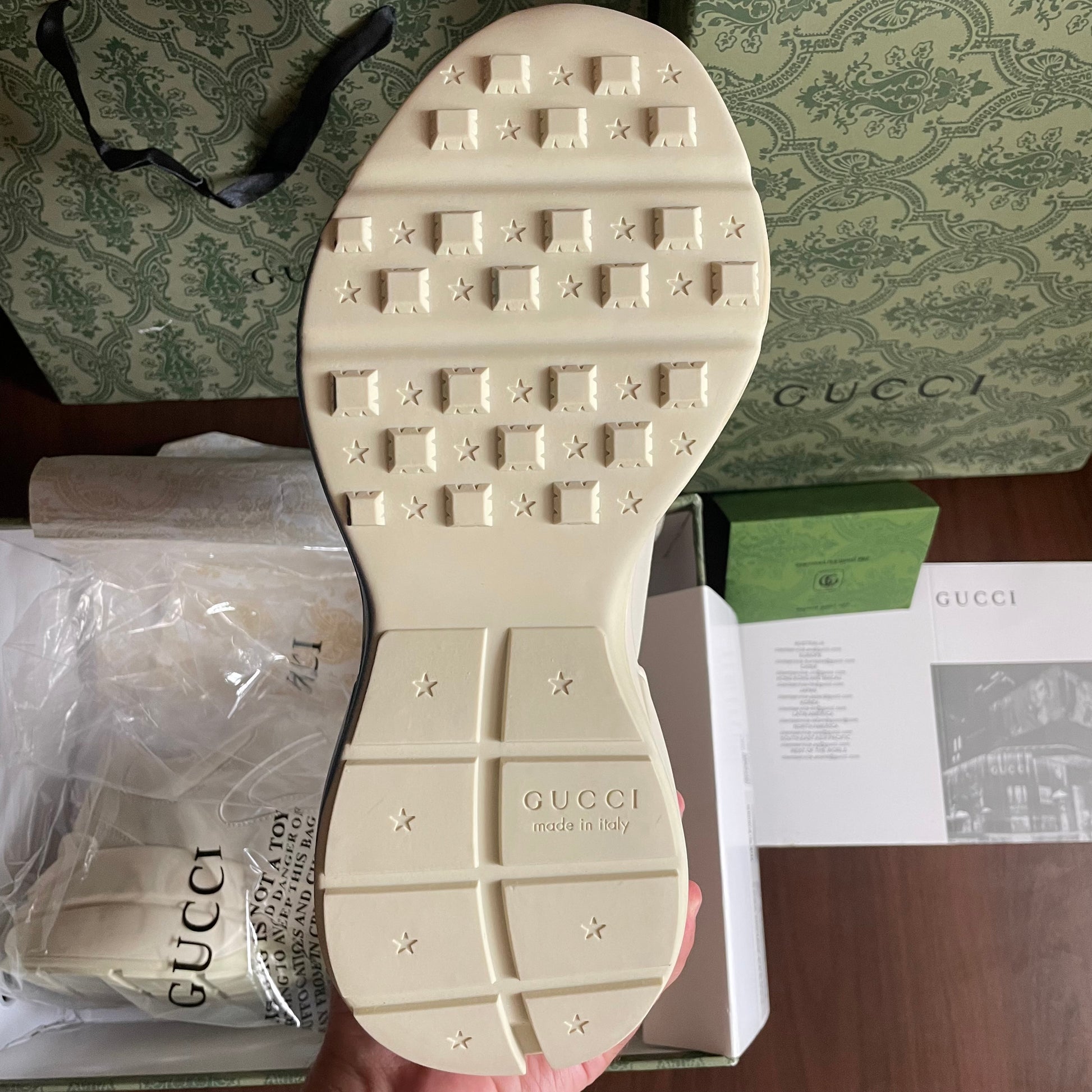 Acești sneakers Gucci Rhyton Wave impresionează printr-un design sofisticat și o construcție solidă, care redă cu fidelitate fiecare linie, proporție și detaliu specific siluetei originale. Finisajele sunt atent executate, cu materiale premium care oferă atât confort, cât și un aspect luxuriant.